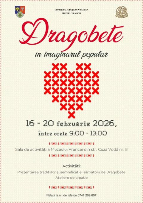 Consiliul Județean Vrancea, prin Muzeul Vrancei, organizează în perioada 16-20 februarie 2026, în sala de activități a Muzeului Vrancei din...