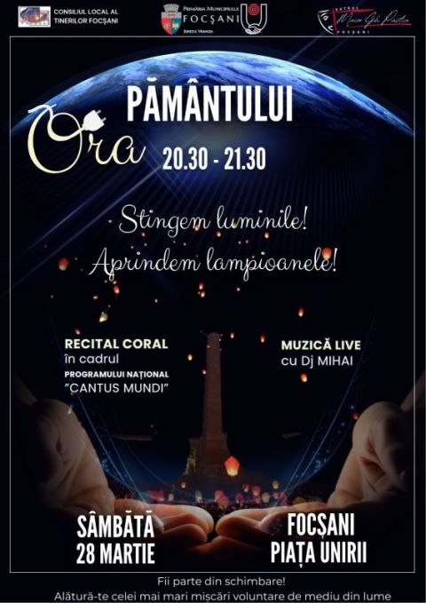 Sâmbătă, 28 martie 2026, între orele 20.00-21.30 în Piața Unirii din Municipiul Focșani vă invităm...