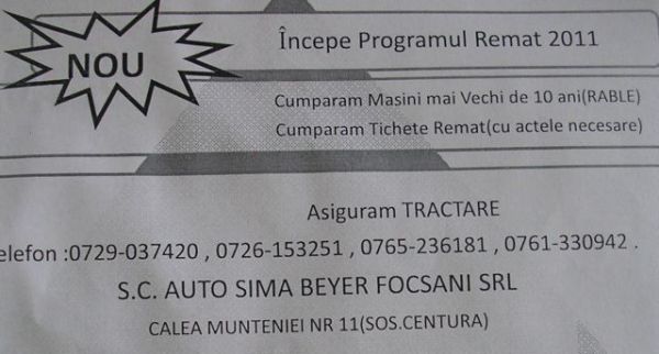 Programul Rabla reîncepe săptămâna viitoare, din 18 martie, persoanele fizice fiind invitate pentru a merge la REMAT-uri pentru a-si casa masinile si a intra in posesia voucherelor. Deja la intrarea în unele dintre scările de bloc din Focşani au fost lipite anunţuri privind achiziţionarea voucerelor pentru maşinile vechi mai vechi de 10 ani, de către […]