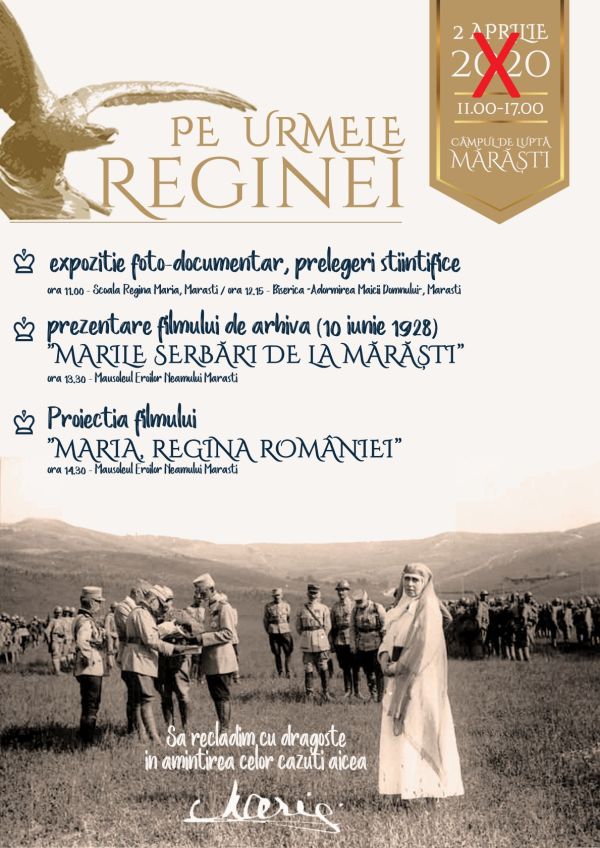 Evenimentul ”Pe urmele Reginei” organizat de către Direcția Județeană pentru Cultură Vrancea în parteneriat cu Institutul Național al Patrimoniului, Inspectoratul de Jandarmi Județean ”Eracle Nicoleanu” Vrancea, Primăria Comunei Răcoasa și Protoieria Panciu, planificat în data de 02 aprilie 2020 în satul Mărăști, comuna Răcoasa va fi amânat pentru o dată ulterioară în contextul implementării măsurilor […]