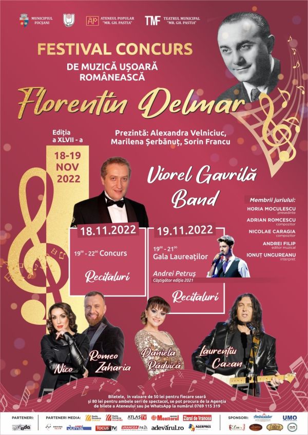 Cea de-a 49-a ediție a Festivalului de muzică uşoară românească “Florentin Delmar” începe pe 18 noiembrie la Ateneul Popular ”Maior Gh. Pastia” Focșani * Vineri și sâmbătă, iubitorii muzicii ușoare de calitate sunt așteptați de la ora 19.00, locația fiind, ca de fiecare dată, Ateneul Popular „Mr. Gh. Pastia” Focșani In cele două zile, pe […]