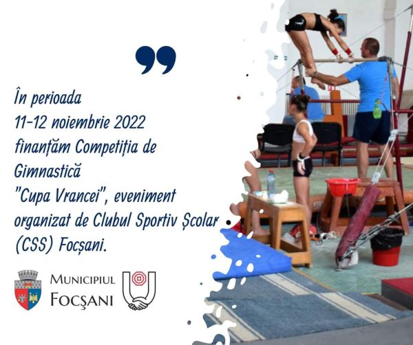 * Consilierii locali au aprobat astăzi un proiect de hotărâre prin care s-au propus finanțarea, în perioada 11-12 noiembrie 2022, a Competiției de Gimnastică ”Cupa Vrancei”, eveniment organizat de Clubul Sportiv Școlar (CSS) Focșani * “Pe această cale, doresc să îi felicit pe consilierii locali pentru că au avut inițiativa de a dubla premiile care […]