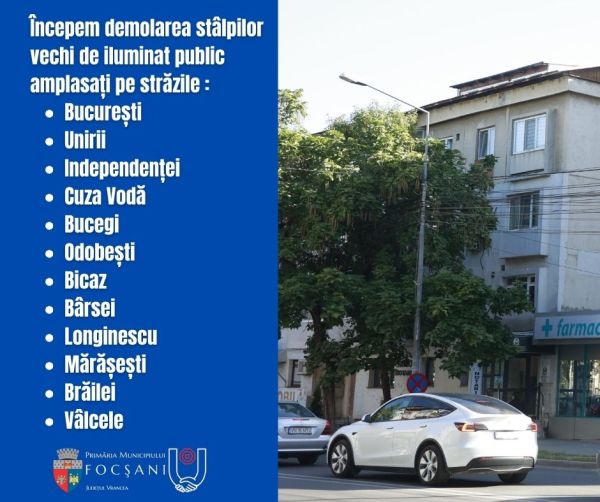 * Săptămâna viitoare va începe demolarea stâlpilor vechi de iluminat public amplasați pe arterele principale din Municipiul Focșani * Acțiunea de demolare se va desfășura pe bulevardele și străzile unde Primăria Municipiului Focșani a realizat noul sistem modern de iluminat public care va fi pornit în zilele următoare * Odată cu demolarea stâlpilor care aparțin […]