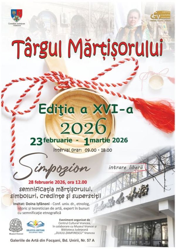 Sâmbătă, 28 februarie, în cadrul „Târgului Mărțișorului”, sunteți invitați la un eveniment deosebit dedicat simbolurilor care definesc primăvara. Dacă vrei să afli ce povești se ascund în spatele firului alb-roșu și care sunt superstițiile care ne-au însoțit de generații, ești așteptat la un dialog fascinant despre tradiție. 🗓️ Când și unde? Data: Sâmbătă, 28 februarie […]