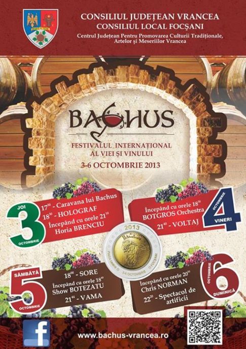“Vă aștept la Festivalul Internațional al Viei și Vinului ”Bachus 2013” în perioada 3-6 octombrie, în Piața Unirii din Focșani, Vrancea” – Marian Oprișan, președintele Consiliului Județean Vrancea