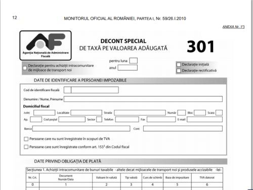 Formularul 301 – decont special de TVA