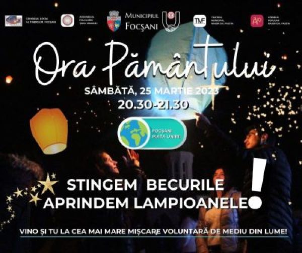 Sâmbătă, 25 martie 2023, între orele 20.30-21.30 în Piața Unirii din Municipiul Focșani va fi marcată “Ora Pământului”, cea mai mare mișcare voluntară de mediu din lume. Simultan, în peste 60 de țări, autorități locale vor opri iluminatul public între orele 20.30 și 21.30 într-o acțiune prin care ne arătăm angajamentul de a proteja planeta. […]