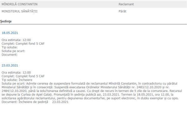* Mîndrilă a câștigat primul proces cu Ministerul Sănătății și va reveni pe funcția de manager general al Spitalului Județean de Urgență „Sfântul Pantelimon” Focșani * Decizia instanței poate fi atacată cu recurs în termen de 5 zile de la comunicare * Instanța Curții de Apel Galați a admis ieri solicitarea lui Constantin Mîndrilă de […]