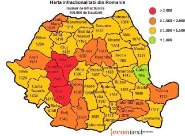 * Vrancea este cel mai periculos loc din Moldova, potrivit site-ului www.econtext.ro * În 2009 în județul nostru au fost săvârșite 1.413 infracțiuni la 100.000 de locuitori * Citiți la această adresă http://www.econtext.ro/dosar–2/analiza/harta-infractionalitatii-unde-este-cel-mai-nesigur-de-trait-in-romania-topul-judetelor-dupa-numarul-infractiunilor.html întreaga analiză * Vrancea este județul cu cele mai multe infracțiuni (1.413) la 100.000 de locuitori. Clasamentul infracționalității din România a fost […]