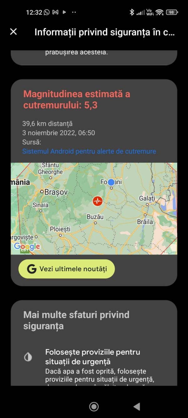 * Dovada că seismul a fost unul important este și faptul că posesorii de smartphone din România au primit mesaje de avertizare de la Sistemul Android pentru alerte la cutremure! * ISU Vrancea transmite că, până la acest moment, nu au fost primite apeluri prin intermediul 112 și nici nu au fost semnalate pagube materiale […]