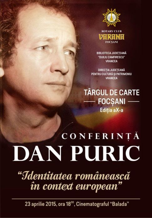 Dan Puric va sustine azi o noua conferinta la Focsani, conferința „Identitatea românească în context european” evenimentul urmand a avea loc în sala Cinematografului Balada cu începere de la ora 18.00 *