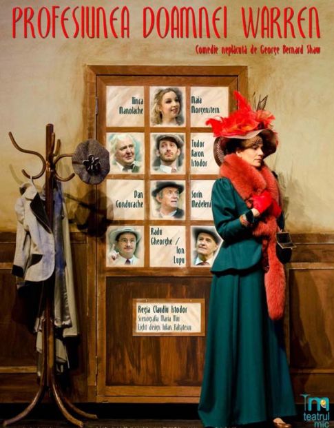 Distribuţia: MAIA MORGENSTERN (Doamna Warren), ILINCA MANOLACHE (Vivie Warren),Mihai Dinvale (Sir George Crofts), TUDOR AARON ISTODOR (Frank Gardner), SORIN MEDELENI (Reverendul Samul Gardner), Ion LUPU (Praed).