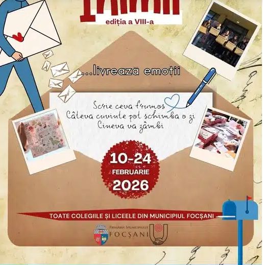 Cele mai frumoase sentimente ale liceenilor focşăneni vor fi exprimate prin scrisorile transmise de „Poştaşul Inimii“. Proiectul derulat de Consiliul Local al Tinerilor (CLT) și finanțat de Primăria Municipiului Focșani, a ajuns anul acesta la cea de-a VIII-a ediție.
