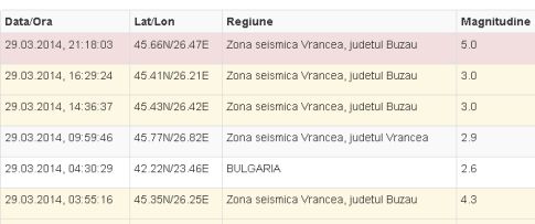 Numai puţin de cinci cutremure, cel mai mare având o magnitudine de 5 grade pe scara Richter si intensitatea IV, s-au înregistrat sâmbătă, 29 martie, în zona seismică Vrancea. Ultimul cutremur, cel de 5 grade pe scara Richter s-a produs la ora 21.18 în zona seismică Vrancea, fiind resimţit şi în Capitală. Site-ul INFP.ro al Instutului Naţional de Fizică a Pământului a fost luat cu asalt de internauţii doritori de detalii deoarece ultimul dintre cutremure s-a simţit cât se poate de serios în Focşani şi în împrejurimi.