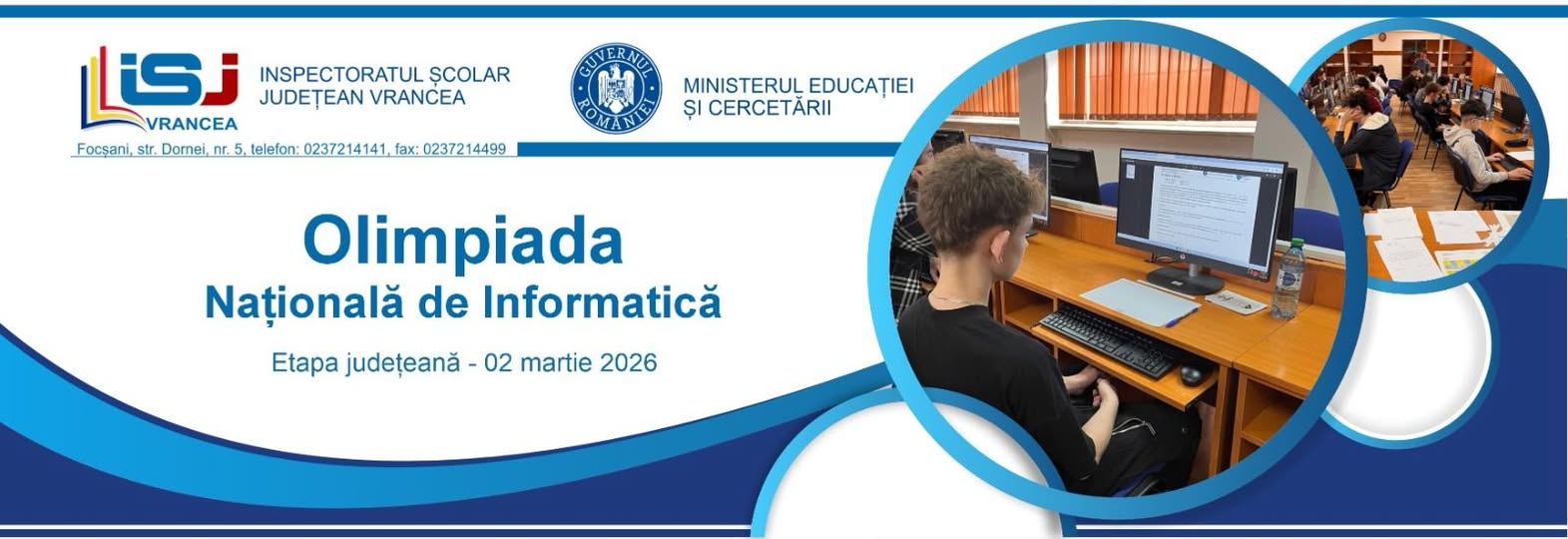 Inspectoratul Școlar Județean Vrancea a organizat etapa județeană a Olimpiadei Naționale de Informatică, competiție dedicată elevilor pasionați de programare. Competiția s-a desfășurat pe 2 martie 2026, la Colegiul Tehnic „Ion Mincu” din Focșani, reunind elevi din unitățile de învățământ ale județului Vrancea, la secțiunile gimnaziu și liceu.